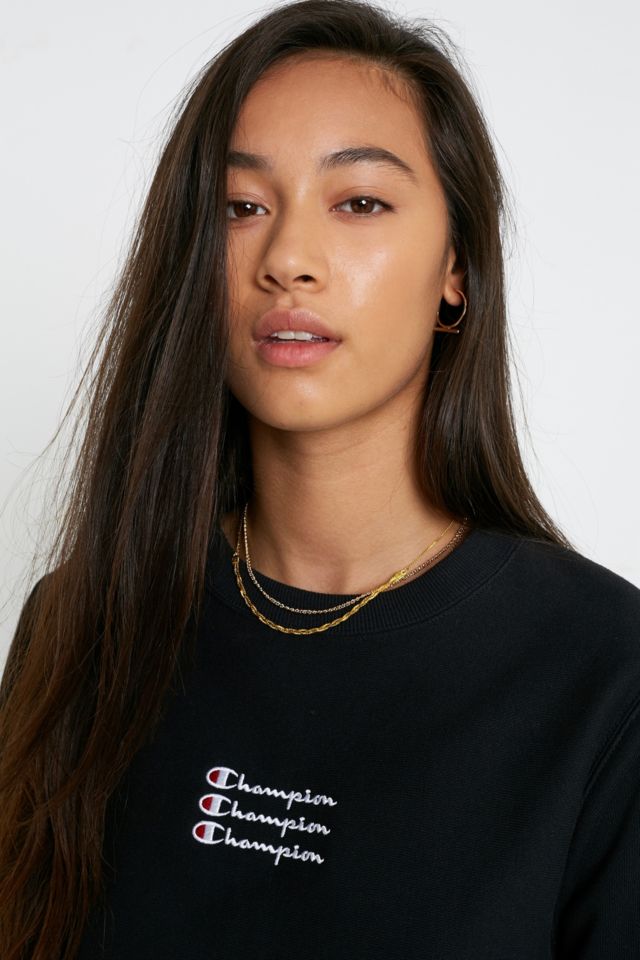 Champion uo exclusive small on sale script black crew neck sweatshirt