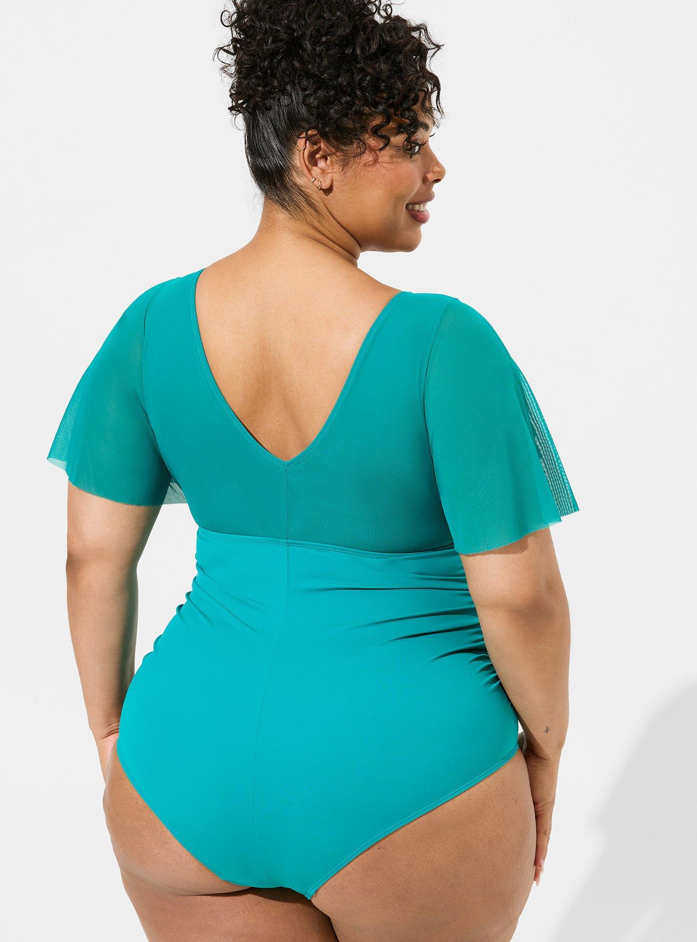 Flutter sleeve swimsuit plus on sale size
