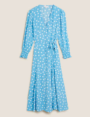 Navy polka dot wrap on sale dress