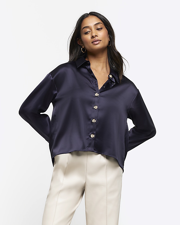 Navy on sale satin top