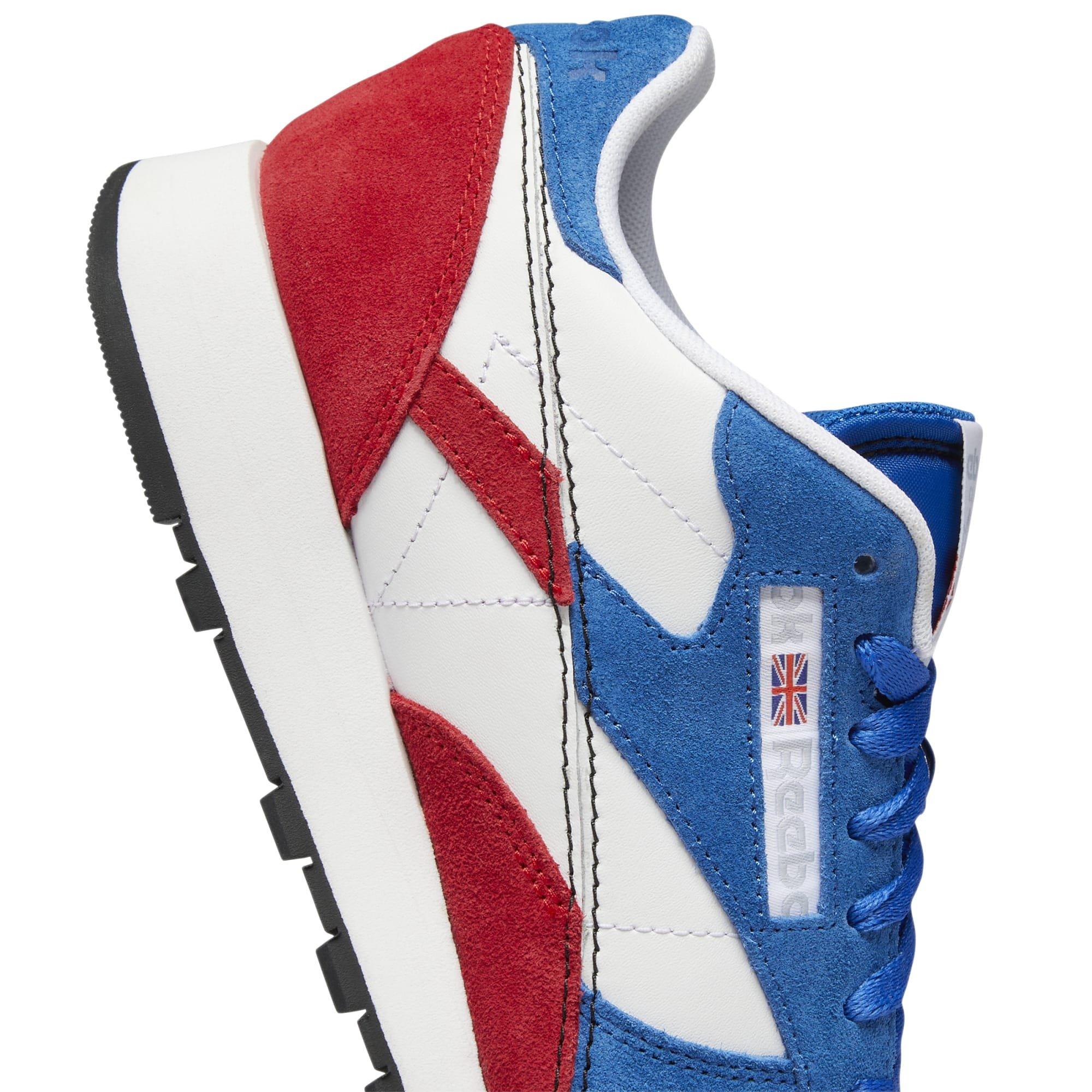 Reebok classic white red on sale blue