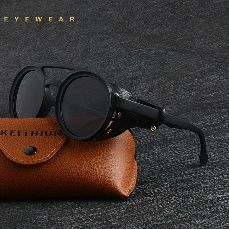 Round sunglasses with on sale leather side shields