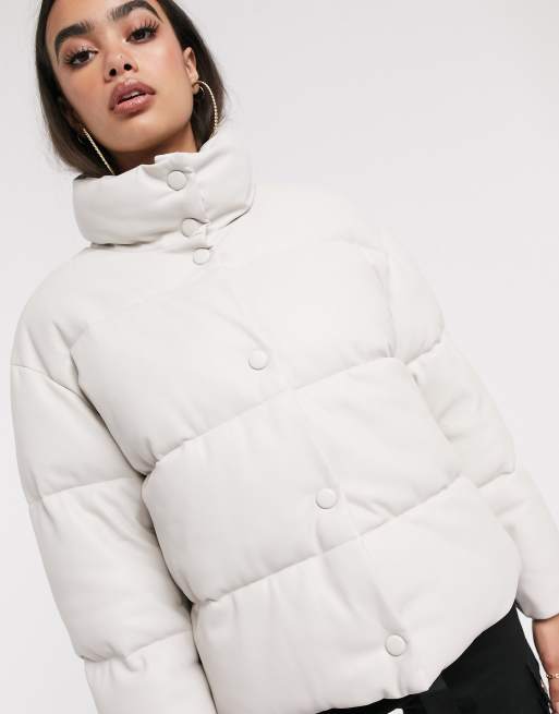 White on sale leather puffer