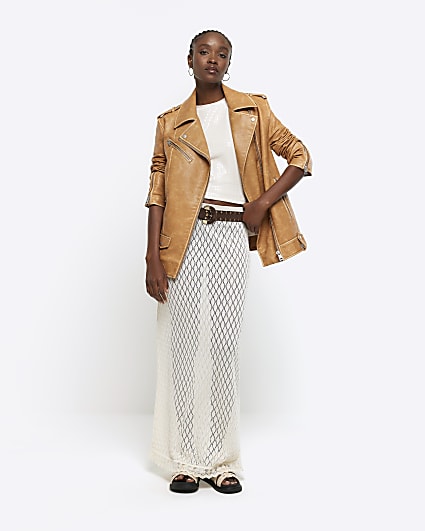 Zara beige on sale leather jacket