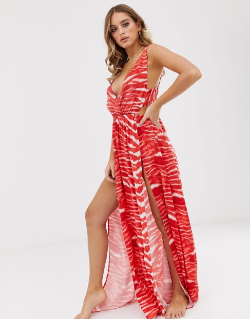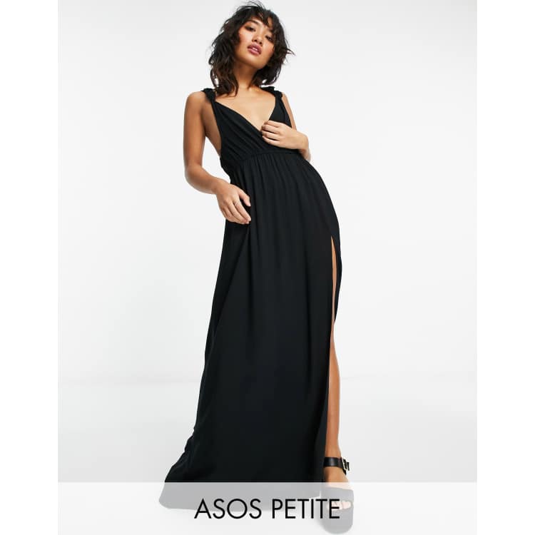 Asos design tie back cross front on sale split maxi beach dress in black