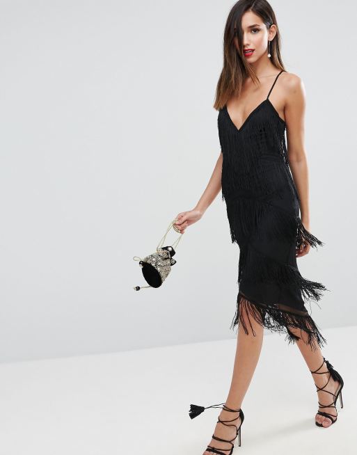 Asos fringe mesh on sale strappy maxi bodycon dress