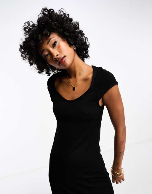 Black v neck jersey on sale dress
